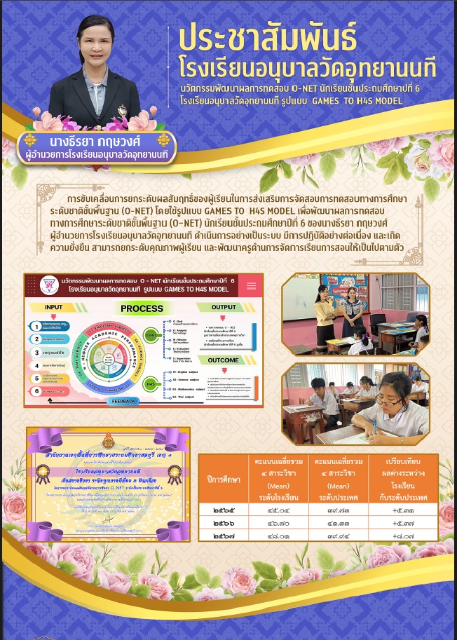 ชื่อผลงาน : การขับเคลื่อนการยกระดับผลสัมฤทธื์ของผู้เรียนในการส่งเสริมการจัดสอบการทดสอบทางการศึกษาระดับชาติขั้นพื้นฐาน (O-NET) โดยใช้รูปแบบ GAMES TO H4S MODEL